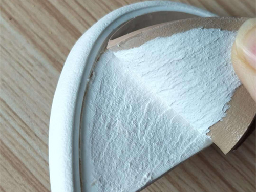 3、使用烘箱时的温度和时间需控制好,以保证产品的比较好粘合性能!各接枝胶产品的性能都不太一样,所以在过烘箱时应特别注意各接枝胶的特点和耐热性,要求鞋厂在使用本中底胶前应先作好试验,特别是要注意"过烘箱的温度和时间以及粘力"等,以及注意"选择比较合适的接枝胶"和"下一工序的衔接",以免出现"开胶、粘力不够、耐热不好"等问题;